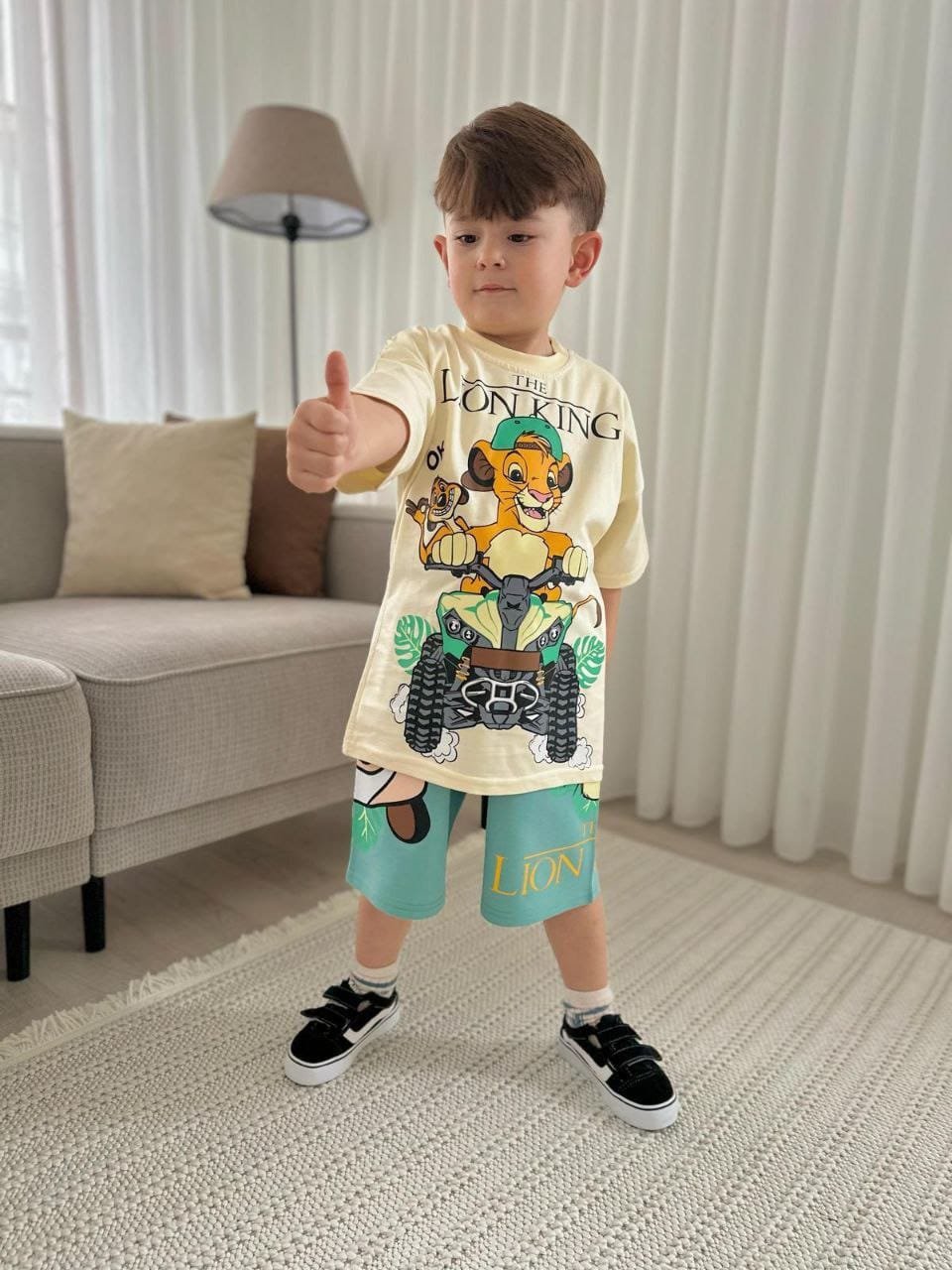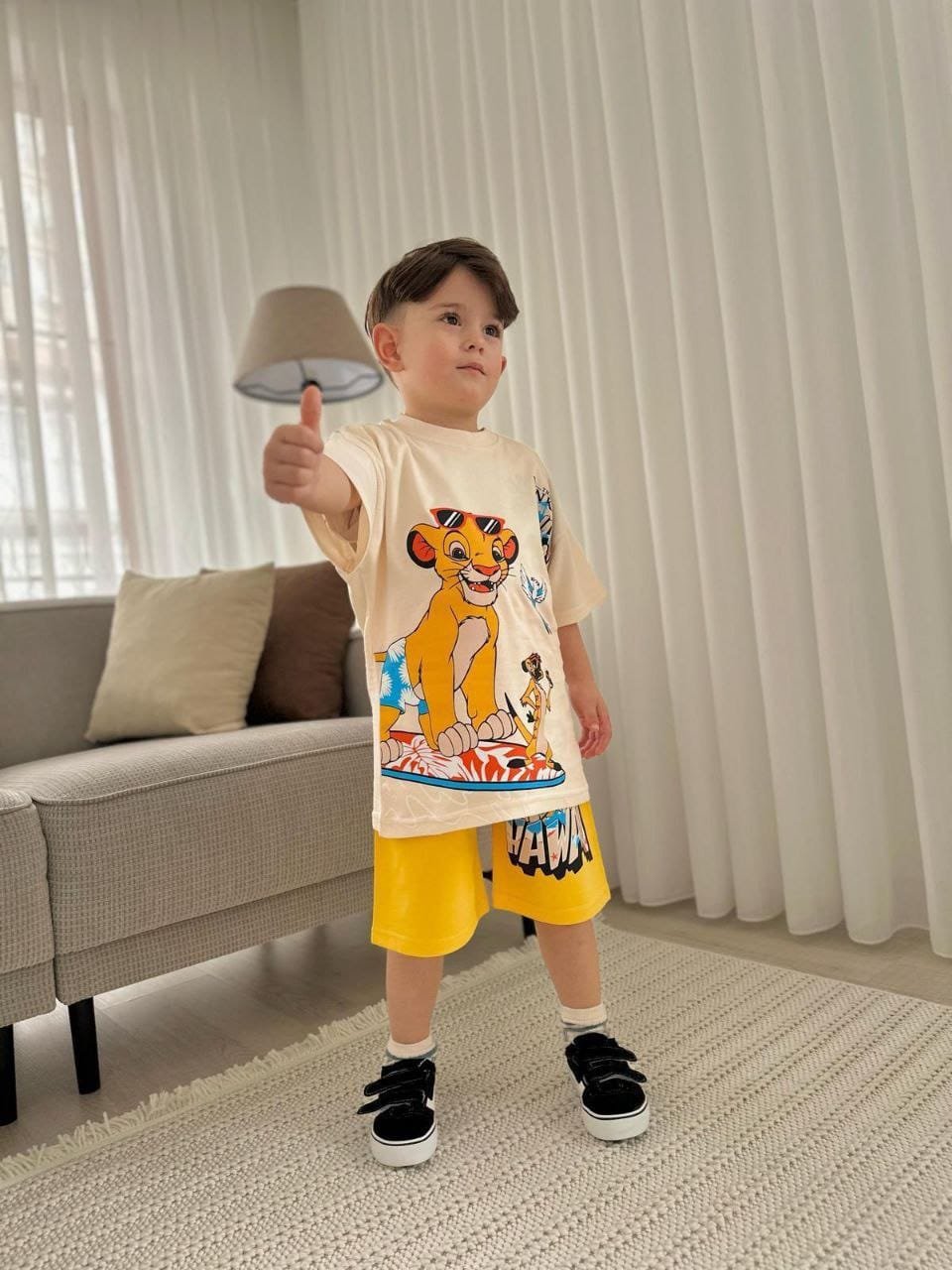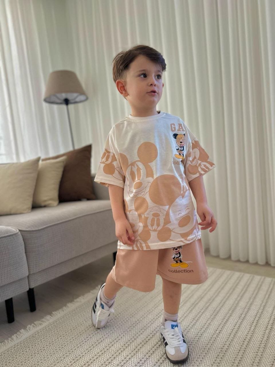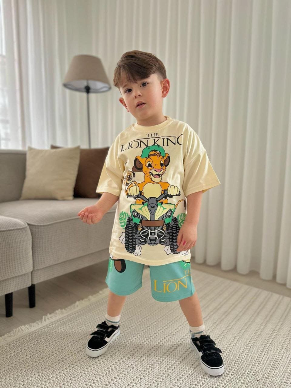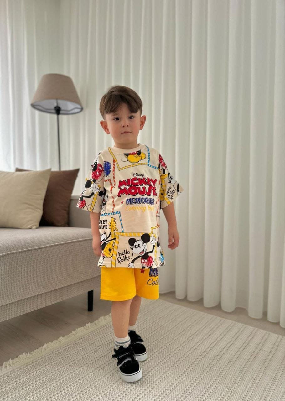 This boys clothing serves the general taste and consists of two pieces, short  and T- shirt.