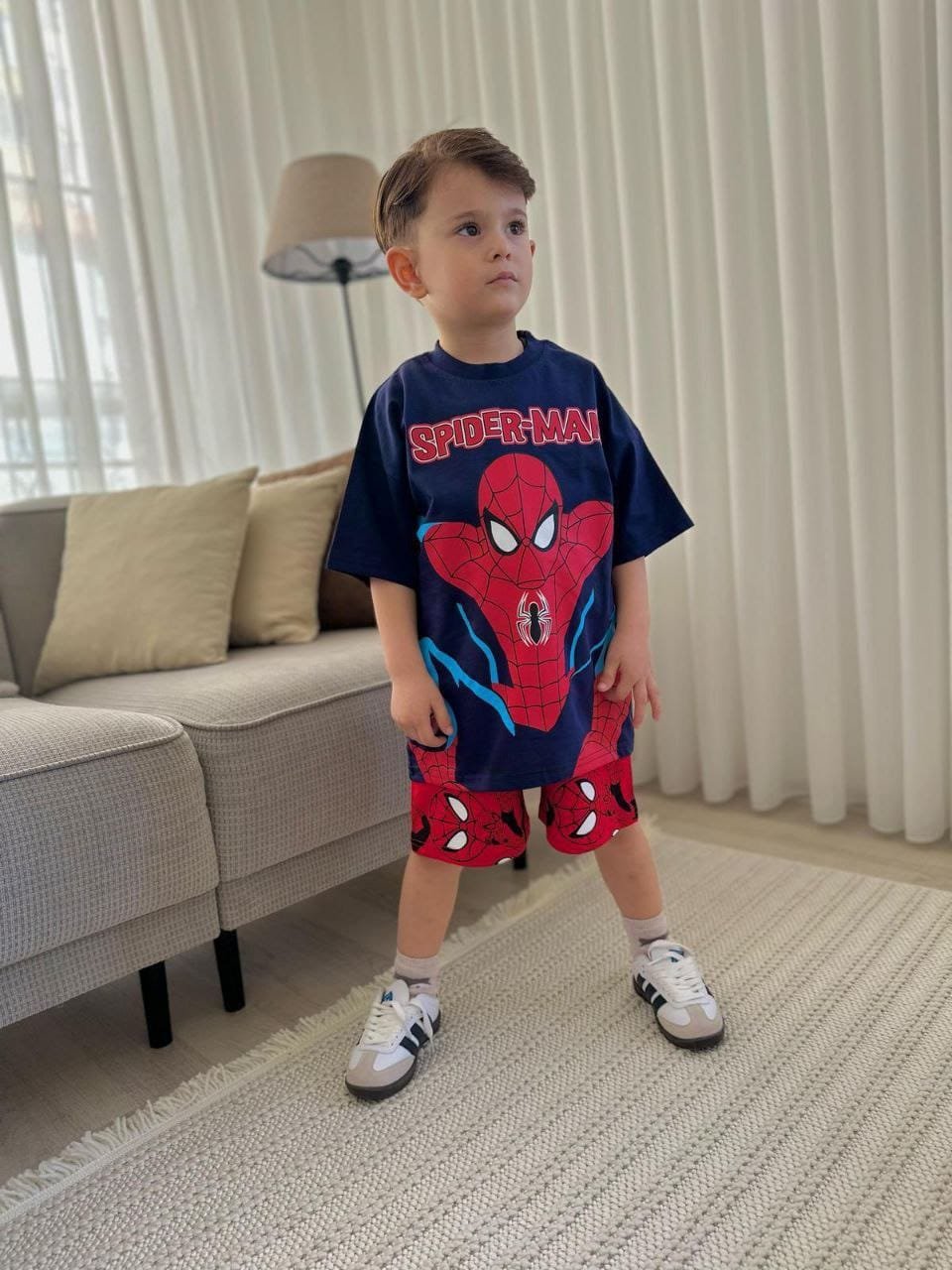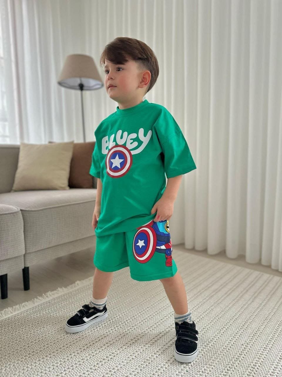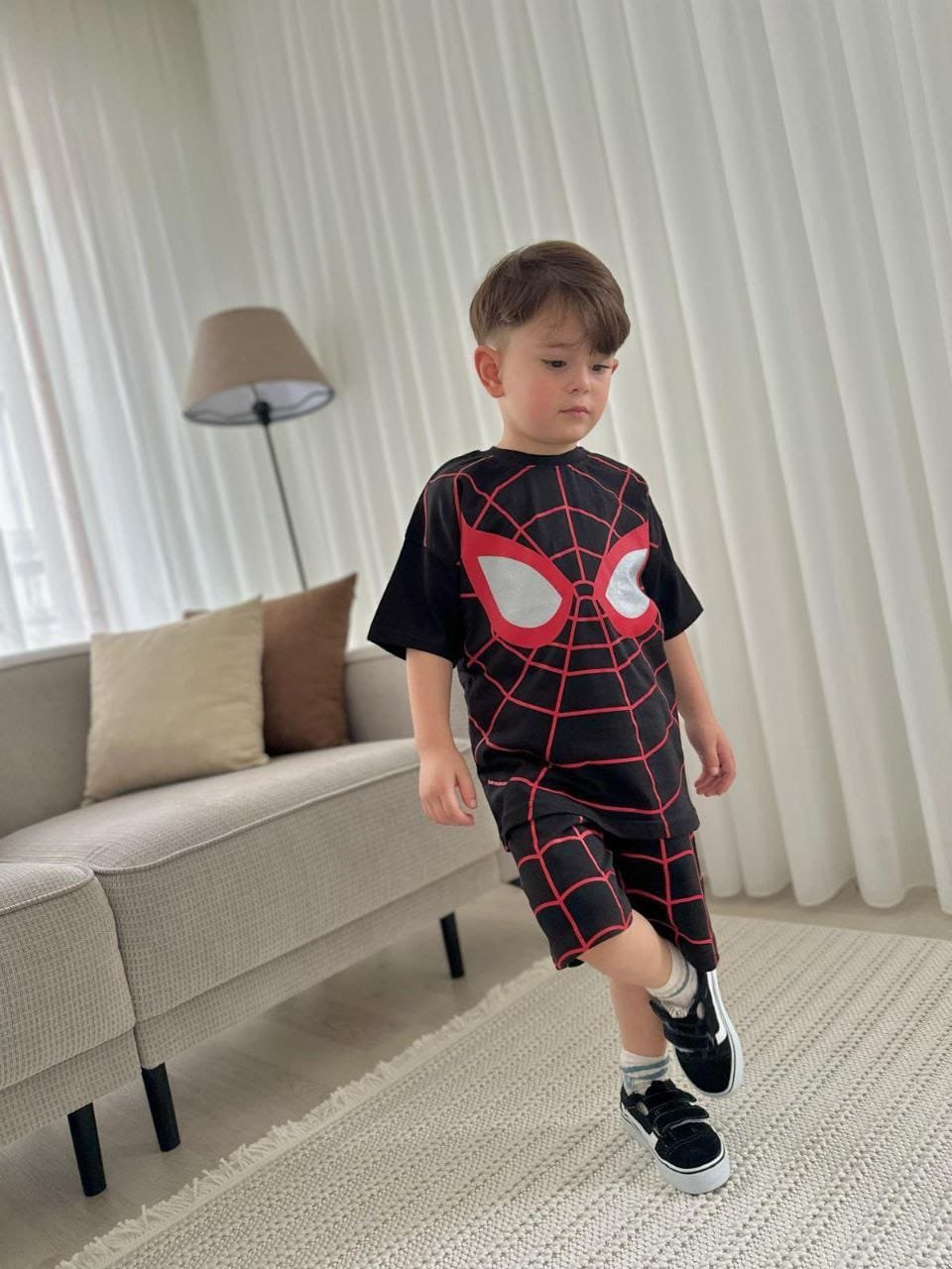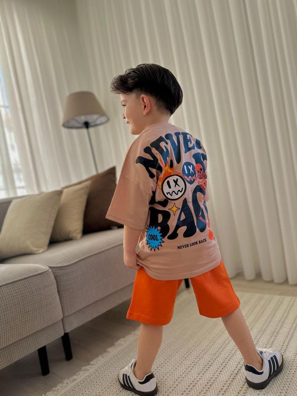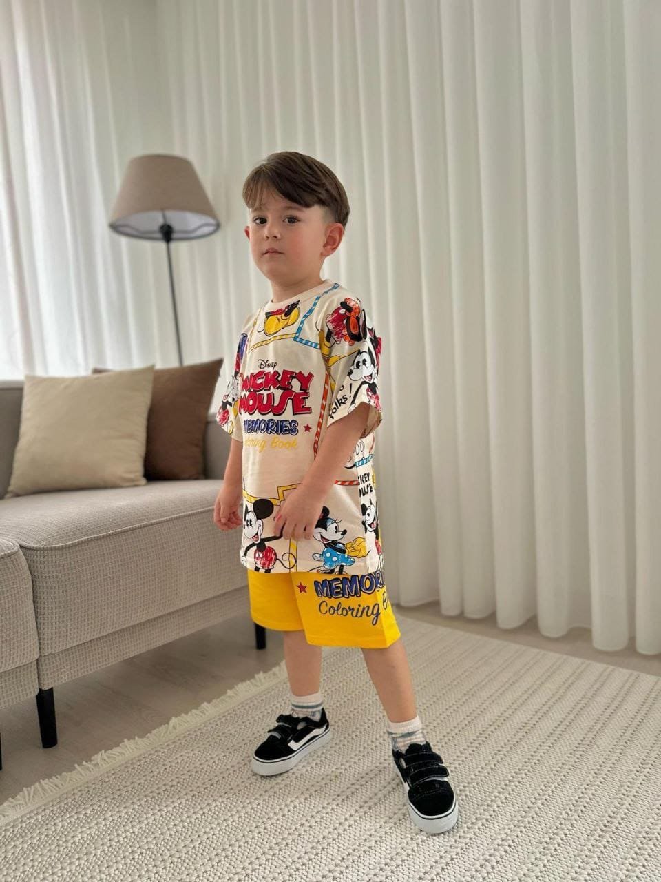 This boys clothing serves the general taste and consists of two pieces, short  and T- shirt.