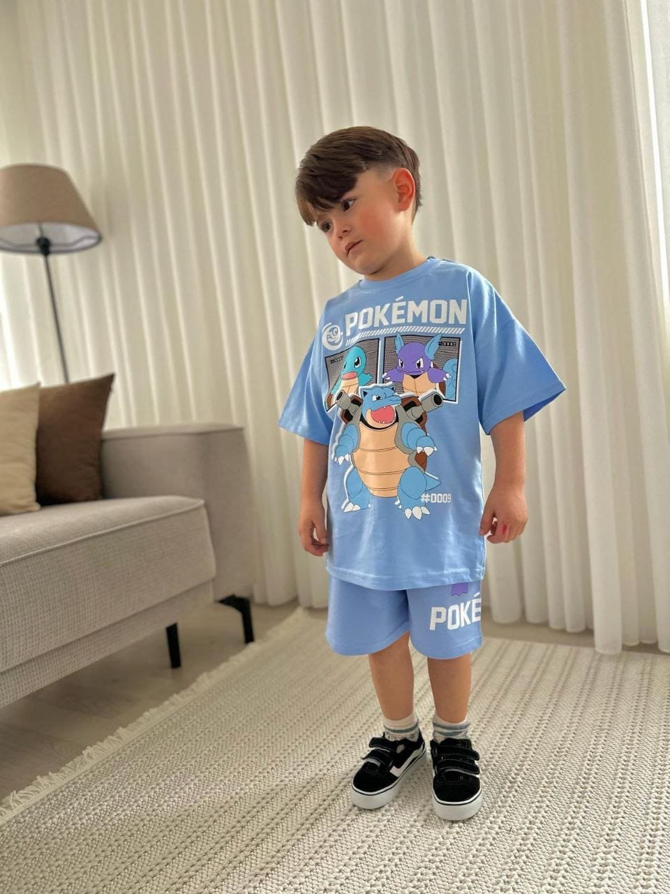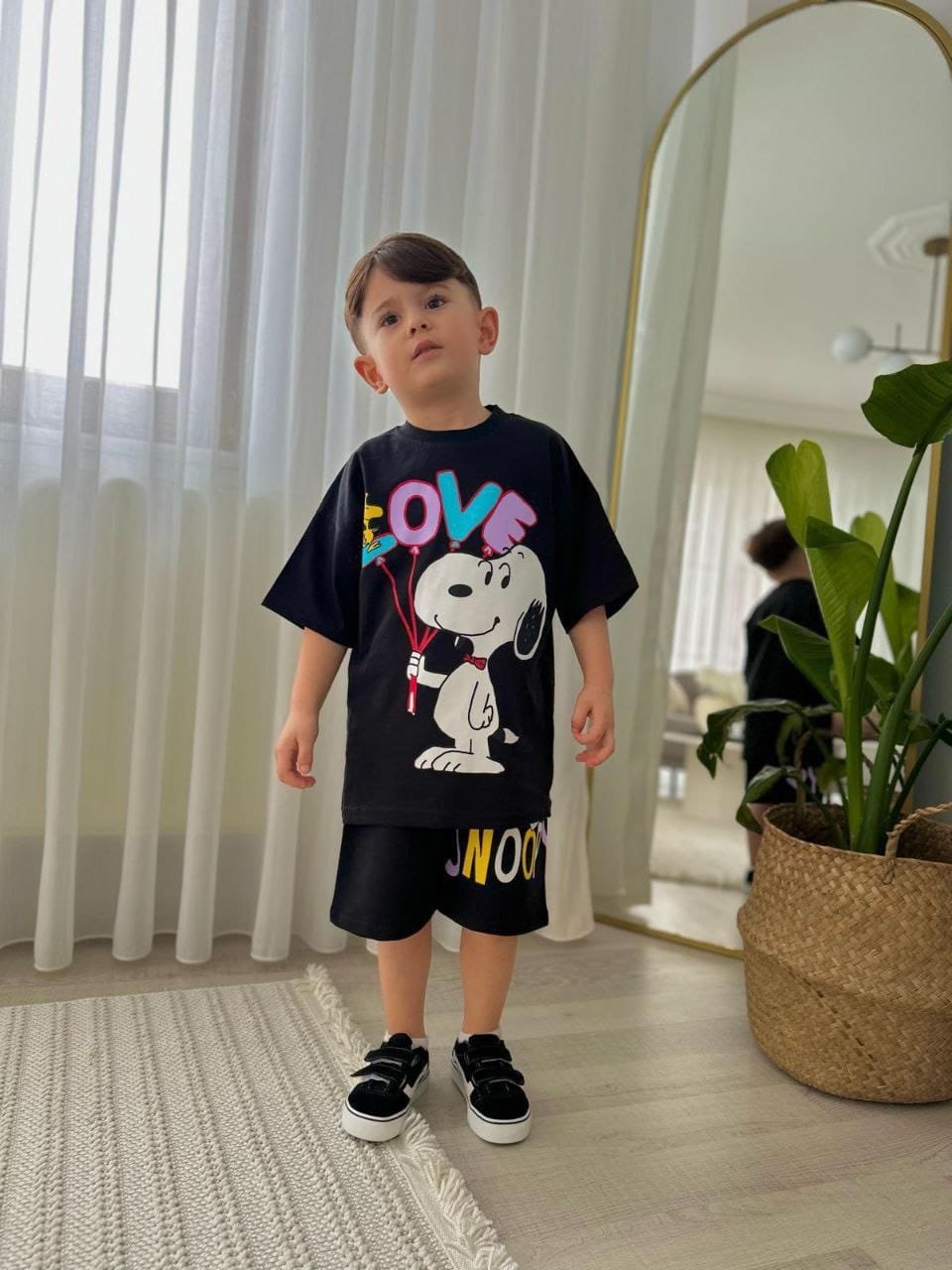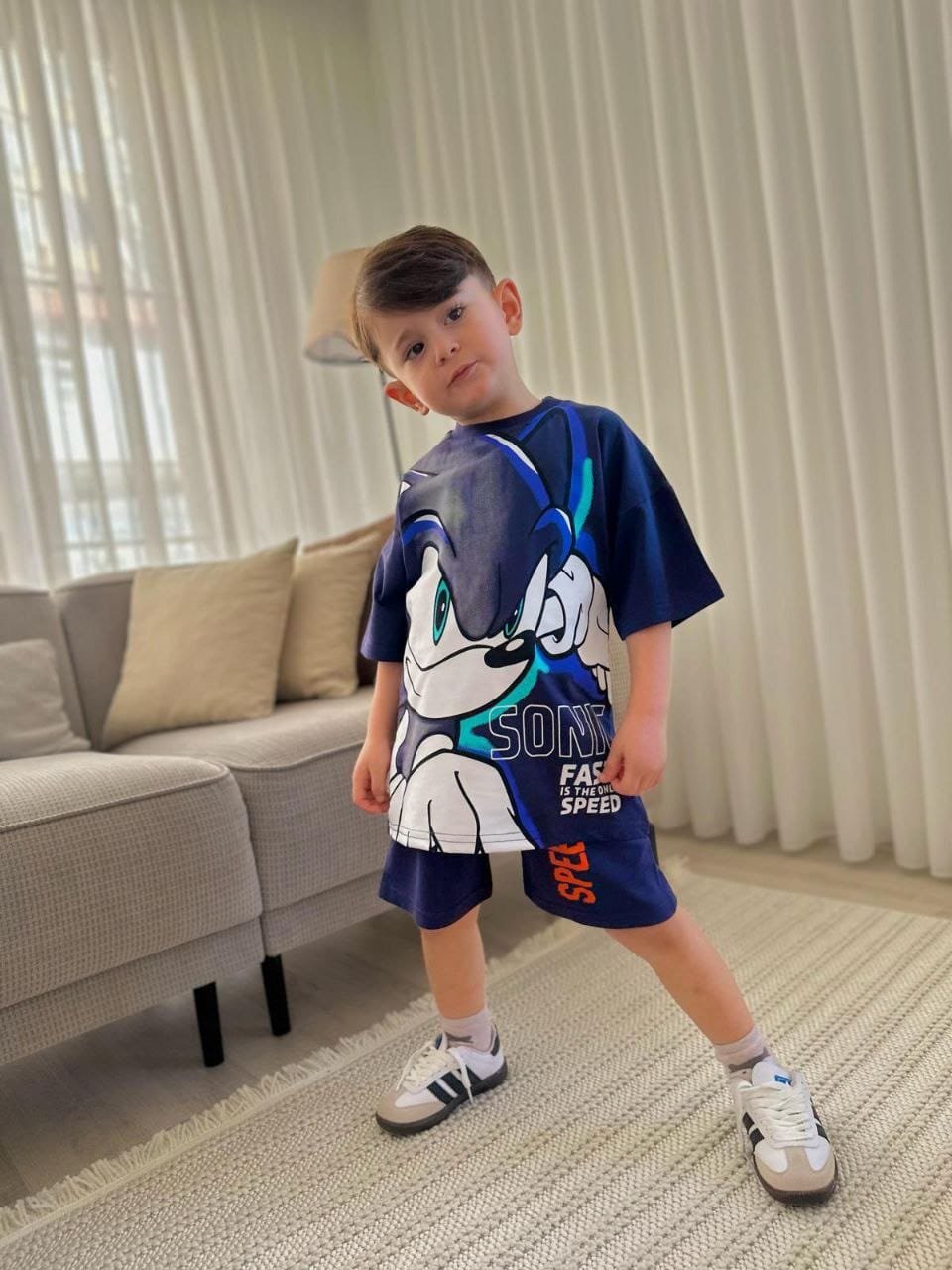 This boys clothing serves the general taste and consists of two pieces, short and T- shirt.