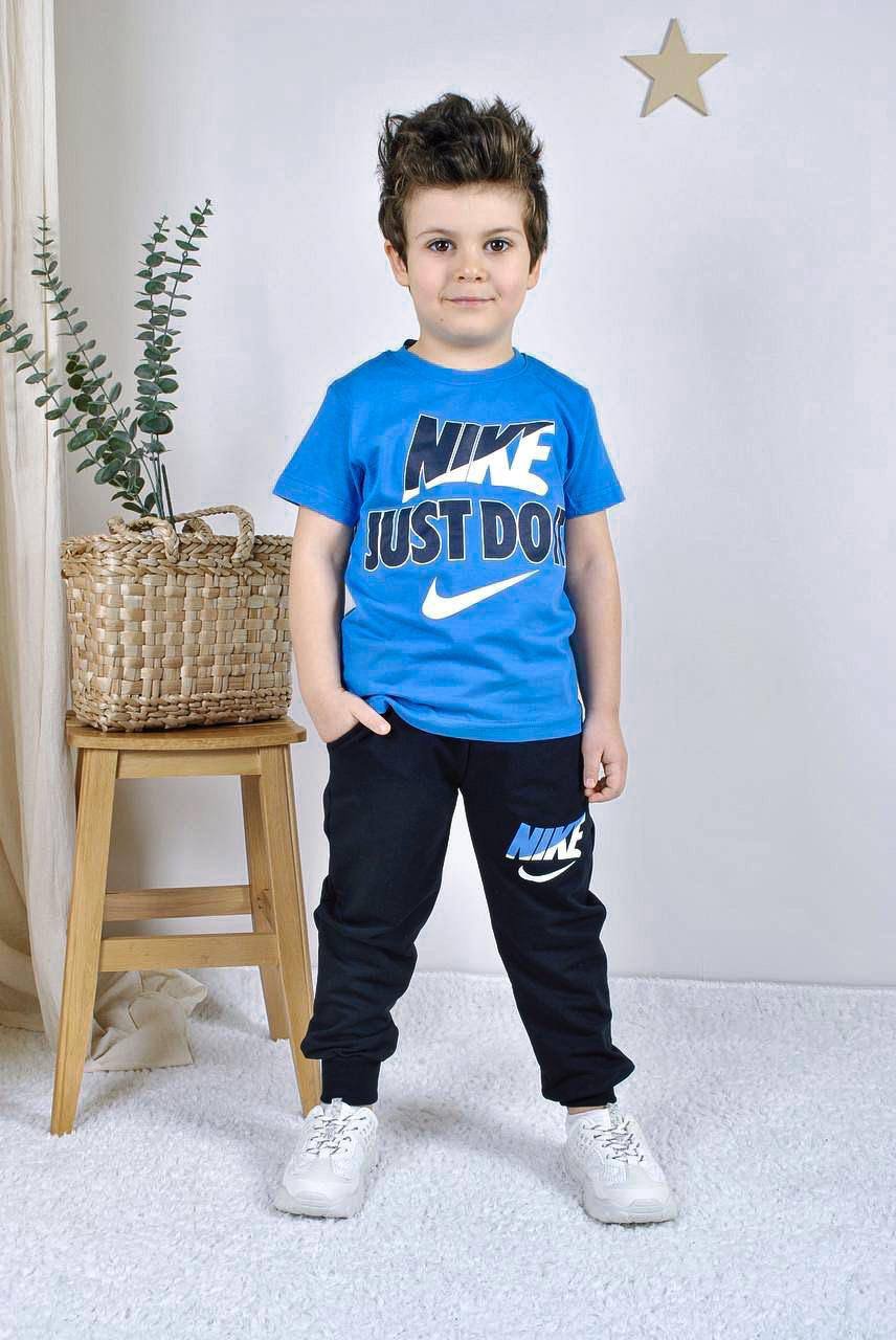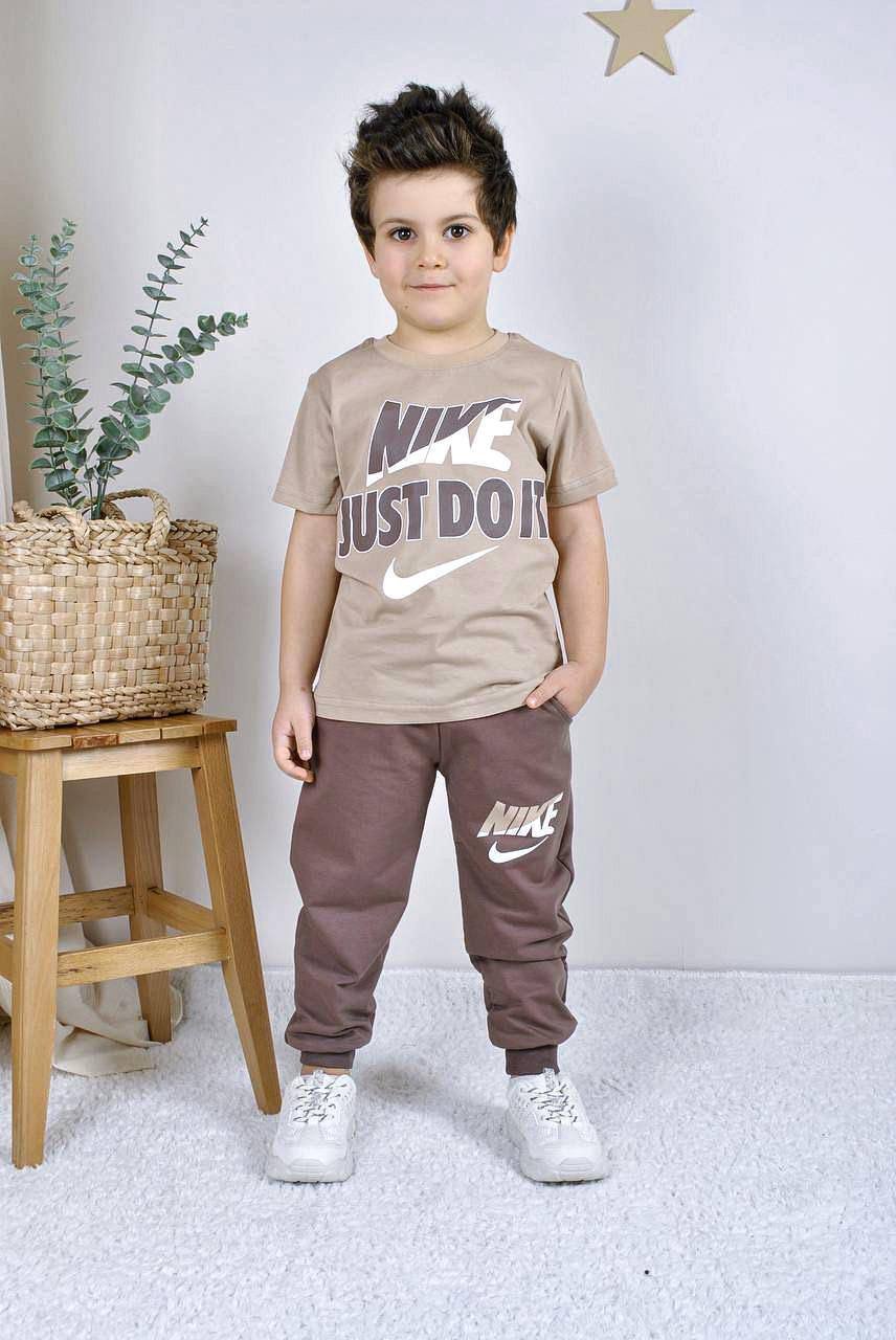 This boys clothing serves the general taste and consists of two pieces, trousers and T- shirt.