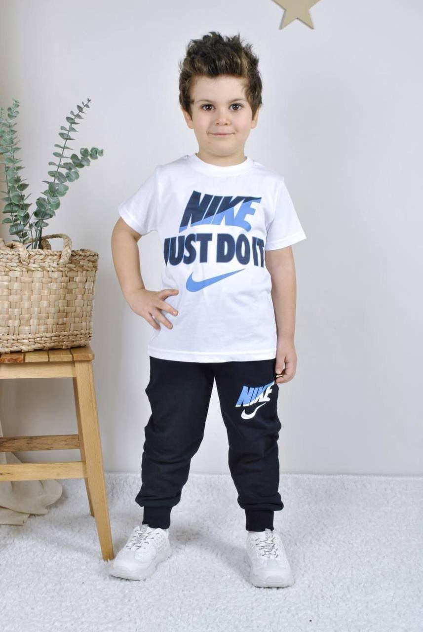 This boys clothing serves the general taste and consists of two pieces, trouser and T- shirt.