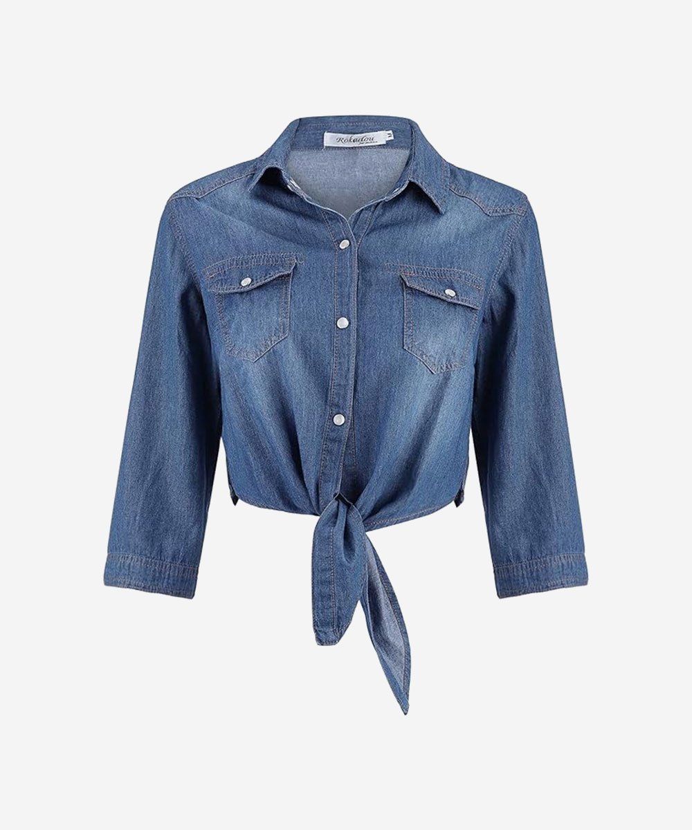 Two chest pockets, swallow tail front, turn down collar, roll up sleeves with button. Pair with dress, shorts, jeans, sneakers, soft and comfy fabric, suit for spring, summer and early autumn.